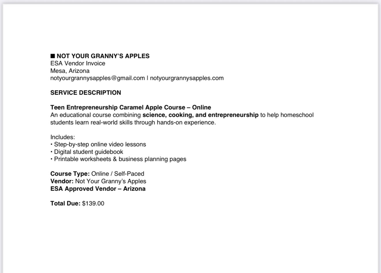 Once funds are deducted from your ESA balance, you’ll receive confirmation — and I’ll email your student’s access link directly!